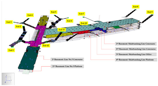 | Scenario D | Evacuate to both sides of the first basement floor of Line 3 and the second basement floor of the Shinbundang Line | Rooms: 7001, 7002, 8001, 8002, 8003, and 8004 |