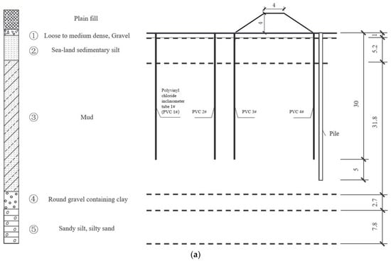- Li, H.-Q.; Wei, L.-M.; Feng, S.-Y.; Chen, Z. Behavior of piles subjected to surcharge loading in deep soft soils: Field tests. Geotech. Geol. Eng. 2019, 37, 4019–4029. [Google Scholar] [CrossRef]