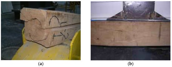 The structural purpose of a timber beam floor is to resist the bending moment induced by vertical permanent loads (structural and non-structural dead loads) and live loads applied on the timber boards or tile diaphragms. The static scheme is relatively simple (determinate structure), and it can be described using the analogy of a simply supported beam under a uniform distributed load. However, there are several uncertainties to consider: the fact that timber is a natural material, its non-isotropic structure, the effect of moisture content, defects such as knots and grain deviation, and cracking and splitting resulting from differential shrinkage during the seasoning process [,]. Building codes have typically considered all these uncertainties by using high safety factors for all mechanical properties to use in design. In addition, the moisture content and biotic attacks from insects and fungi have been addressed in many standards by introducing the exposure coefficient [].