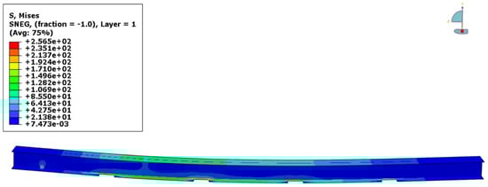 Failure mode of the bare GFRP pultruded profile subject to flexure from FEM (stress values are in MPa).