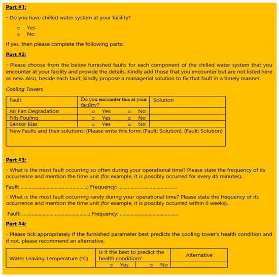 After addressing the experts’ comments, the survey was finalised and inserted into a web-based platform, which is explained in the next sub-section. Figure 3 shows an excerpt from the survey that is related to the cooling tower part. The same is repeated with other CWS components.
