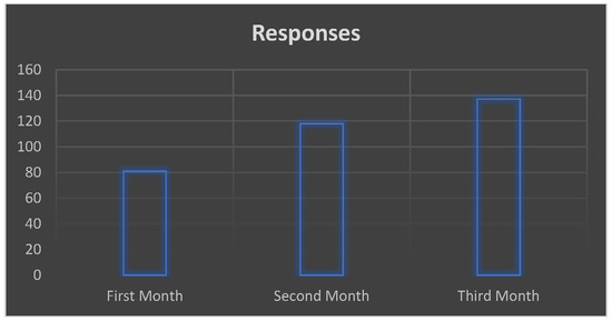 The auto reminders and the phone calls’ follow-up paid-off as the responses increased during the second and the third months, respectively. Figure 5 explains the number of responses for each month of the provided duration.