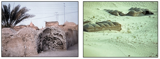 Deterioration (left) and burial (right) of traditional housing in the town of Gumar, Algeria (photos: M. Sherzad).