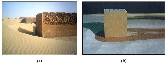 This study also shows that when careful attention is paid to fulfilling the simulation requirements related to sand dynamics, wind tunnel experiments with scale models can lead to correct predictions of the erosion and deposition patterns. Previous studies have shown that this is also true for dust patterns, as well as for snow (see, for example, [4,5,6,9,11,13]). This makes the wind tunnel a very useful tool for developing optimum designs for buildings to be erected in a desert environment where sediment dynamics is very high, due to the dry climate and the absence of a continuous vegetation cover.