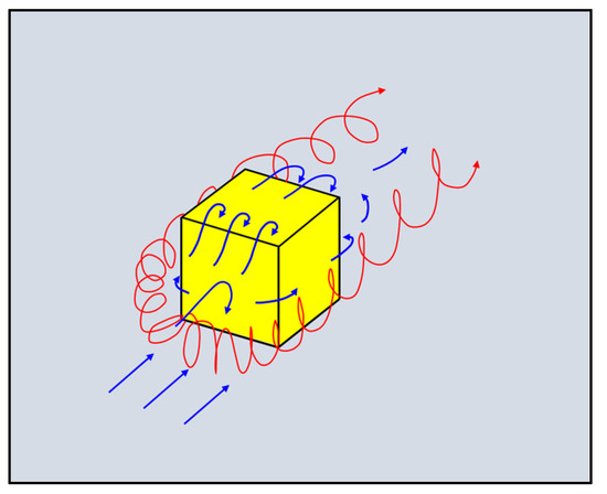 For the scale models of the buildings, we used wooden blocks cut to the desired shape (combination of length, width, and height). The scale reduction compared to the field buildings was 1:50, which was enough to retain sufficiently large models without introducing blockage problems to the wind tunnel. For the largest model used (8 cm × 8 cm × 24 cm) the blockage percentage was 2.3%, which is below the critical value of 3% suggested by [44]. No distortion of length, width, or height was applied to the models; therefore, the requirement of geometric similarity was met.