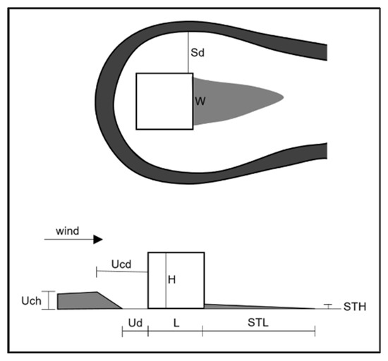 If sand deposition or erosion patterns are simulated adjacent to an obstacle, additional parameters that should be considered are (see also [42,43]):
