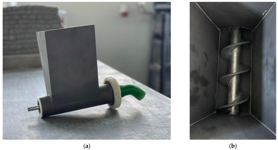 The newly developed methodology for testing the buildability of silicate mixtures for 3D printing consists in extruding the mass through by a screw conveyor through a nozzle printed from PETG with a diameter of 25 mm. The equipment itself is pictured in Figure 6.