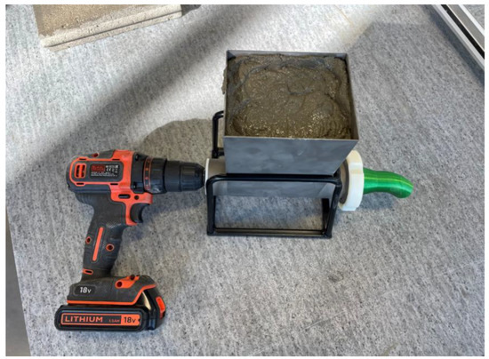 A hopper of the extrusion equipment is filled with tested fresh mixture and the device is powered by a power drill (Figure 7).