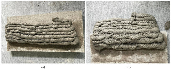 If it is possible to extrude the mixture in ten or more layers without collapsing, the mixture is marked as having met the requirements of the buildability test. Examples of mixtures that failed (Figure 9) and passed (Figure 10) the test requirements are shown in the images below.