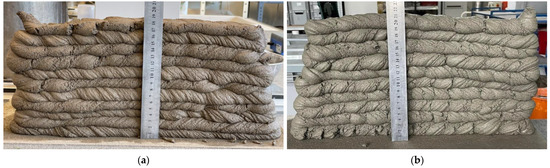 The buildability was tested according to the method stated in Section 3.4. of this paper. The approximate height of each following layer was 15 mm. The optimal buildability consistency and mixture proportions of SAP_35HFA and SAP are shown in Figure 13. The mixture C_C could be built, but the stability of structure was not as sufficient as for the other mixtures. As shown in Figure 14, the following layers are all combined with previous layers without showing any pores or caverns.