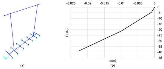 The model amounted to a total of 21 vertical and 7 horizontal link elements calculated using soil properties given in Table 4. The inelastic properties of the vertical links were assigned in terms of the P-y curve (Figure 6b), and the vertical stiffness was equal to kz = 82,288.7 kN/m.