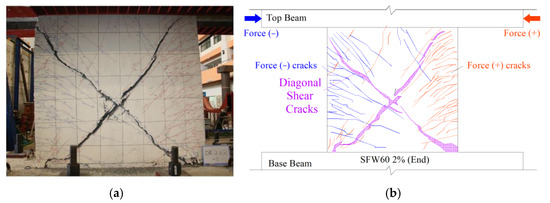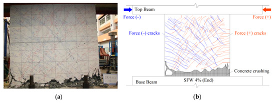 Specimen SFW: failure mode. (a) Failure mode photo [16]. (b) Failure mode schematic.