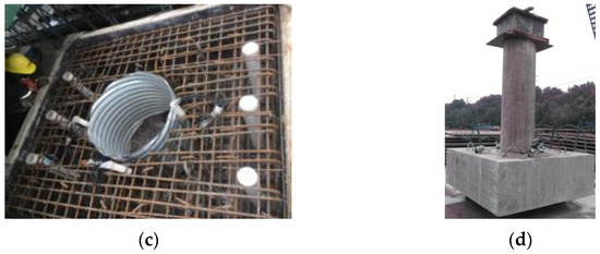 Regarding the application of socket connections, there are many precedents at home and abroad. In the 1950s, the piers and columns of many railway bridge piers adopted socket connections in China. The Beijing Jishuitan Bridge Test Project, which was completed in 1992, is a highway precast bridge pier project completed earlier in China. In 2013, the interstate bridge of the SR520 highway in Washington State, USA adopted the socket connection technology [4]. The states of Minnesota and Louisiana in the United States have standardized the design of socket connections for pile foundations caps [2]. In 2016, one of the ramp bridges of the second north section of the Shanghai Jiamin Elevated Bridge also adopted a socket connection structure. The Huaihe River Bridge and the Zhongpaihe Bridge in Anhui Province, the eastern extension of the Jiangbei Expressway in Hubei Province, and a highway bridge in Shandong Province also use socket structures. In 2019, the socket precast pier connection technology was adopted for the viaduct project of the Beijing–Xiong’An Expressway. There are many other cases of socket connections for precast columns and foundations, which can be found in other countries [2].
