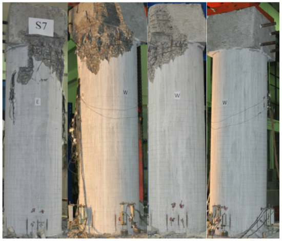 Top pier concrete spalling area of specimen S7.