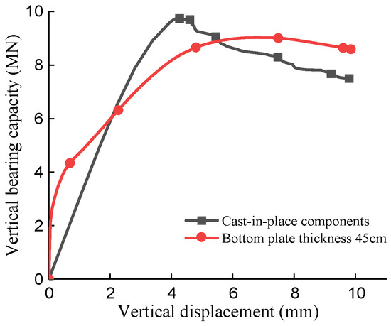 Comparison of the vertical bearing capacity between cast-in-situ and precast bottom plates.