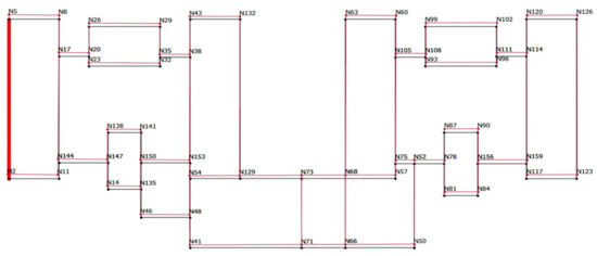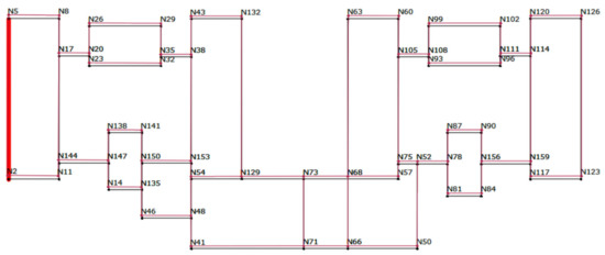 The calculation program is based on the FME (Frame by Macro Element) method [21,22]. The structure is schematized through macro-elements to analyse its seismic behaviour in detail. Specifically, a wall is discretized into two types of deformable macroelements: the first representative of masonry piers and the second corresponding to spandrels. The wall portions connecting piers and spandrels are called rigid nodes; they represent the areas of masonry less subjected to seismic damage.