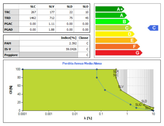 Seismic risk classification of the building retrofitted with an FRCM system.