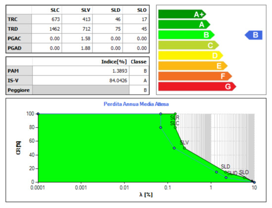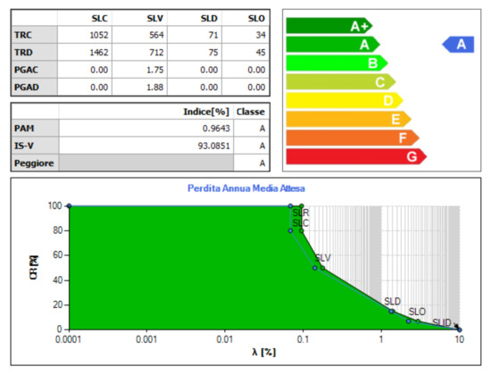 The seismic risk classification of the building after intervention with calculation of both PAM and IS-V parameters provide a class A, as presented in Figure 28.