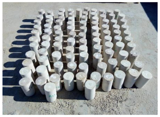 After preparation and marking, one hundred cylindrical core specimens (Height = 20 cm, Diameter = 10 cm).