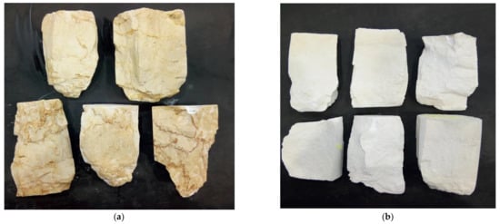 Some of the broken specimens for both included limestone ((a) source 1, and (b) source 2).