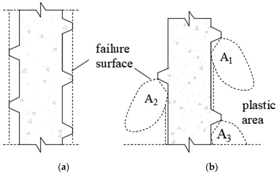 For the screw shear plate with a screw pitch larger than the critical screw pitch, its bearing capacity is mainly composed of two parts: the bearing capacity of the screw teeth’ influential area and the friction area (Figure 19).