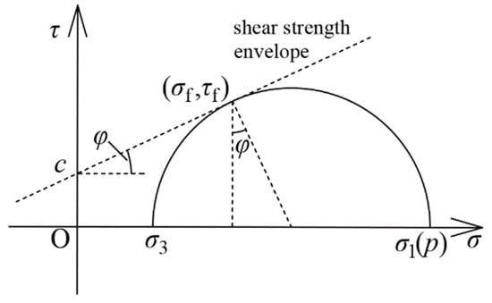 First, the normal stress on the screw OA surface needs to be obtained. According to the geometrical relationship of the Mohr circle, the relationship between the stress on the failure surface AE and the normal stress p on the virtual surface O’A could be calculated (Figure 20).