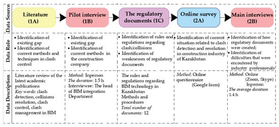This stage intends to find possible existing gaps by visiting the industry. The questions regarding difficulties faced during the working process in the BIM environment and the hypothesis formed during the literature review were examined. For that, the BIM department of one construction company was selected. The selection criteria were based on company size and its role in the integration of BIM technology in Kazakhstan. The highest position in the department (the head of the BIM department) was interviewed. More information regarding the company and interviewee could not be given to keep the company-specific information confidential. The names of a construction company and design organization are also not revealed in the article so as to maintain confidentiality.