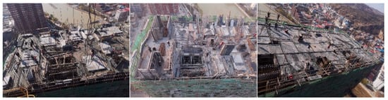 In recent years, the number and height of high-rise buildings around the world have increased dramatically due to economic development, migration of people from rural to urban areas, and advances in construction technology and materials [1,2]. Estimates have predicted that these trends will continue in the future. Tracking the construction process of such buildings is an important task. However, the existing literature seems to pay less attention to it, which may be related to the characteristics of tall building construction. For example, the same unit is repeatedly constructed in the vertical direction; the horizontal working plane is very narrow and there is usually no suitable platform to install monitoring equipment; and the building facades are blocked by scaffolding and protective nets, so it is difficult to obtain the latest construction progress from the ground level. Therefore, whether the existing method is applicable to high-rise buildings needs further discussion.