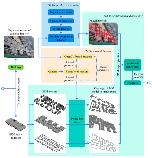 - Register the detected components with BIM elements by comparing the projection position of BIM elements in the imaging plane;