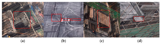 - Auxiliaries rather than concrete members: The material used to infer construction progress in this paper is the auxiliary of building components. This includes a formwork, support, reinforcement cage and pouring tool. Compared with the method of identifying concrete components, this method is more suitable for the actual construction site, the reason being that in the construction site of a cast-in-place concrete structure it is these auxiliary materials that can be collected rather than the concrete component itself;