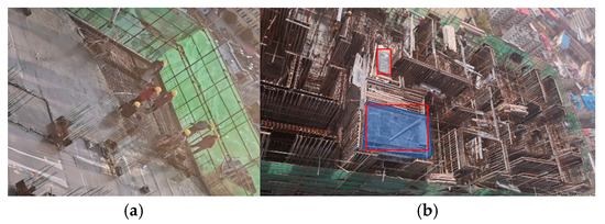 As mentioned in the introduction section, the construction process of high-rise buildings is blocked by scaffolding and a protective net, and can only be collected from the top view. Therefore, the images of this study are collected daily by the tower crane driver. As such, these images must overlap each other. On the one hand, these images are inputted into the target detector to obtain the detection results. On the other hand, they are used to calculate the external parameters of each image to obtain corresponding projection models. The remaining steps are discussed in detail in the following sections.