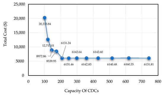 In the supply chain management research area, there are some relevant studies. Guimarães et al. [] addressed a multi-supplier inventory–routing problem (IRP) with capacitated customer points and vehicles. In order to manage the orders, Yao et al. [] proposed a multi-supplier and multi-product location inventory problem, which was based on periodic inventory control policy (R, T) with the aim of determining the inventory level of each distribution centre. Cabrera et al. [] analysed the effects of inventory policies on the decisions about distributing the products. To do this, a single-supplier and multi-product inventory location model with stochastic constraints has been represented, which was based on a periodic inventory control policy (R, s, S). Subsequently, Amiri-Aref et al. [] presented a multi-period location–inventory problem (LIP) to place the potential DCs, as well as determining the inventory reorder point level in each period based on (s, S) policy.