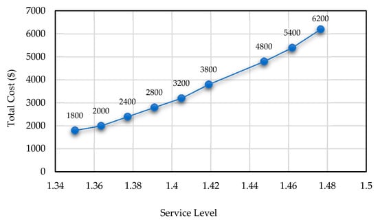 Moreover, many authors have taken into account the IRP [,]. Fokkema et al. [] proposed a continuous supply-centric IRP for the first time, in which inventories are stored in containers that can be both movable and stable storages of capacitated vehicles and depots, respectively. Further, Martínez-Salazar, Molina, Ángel-Bello, Gómez, and Caballero [] developed an IRP by considering stochastic demand and a specified service level to determine the safety stock while minimising the total costs. With a more comprehensive perspective, location–inventory–routing problems (LIRP) have arisen so that in addition to location–inventory decisions, managers can select the best routes for transportation []. Max Shen and Qi [] proved the efficiency of LIRP, as well as found a low-order polynomial algorithm, by working on a stochastic problem. Moreover, the research approximates the shipment from each DC to its customers using a vehicle routing model, which has been solved by Lagrangian relaxation. Javid and Azad [] demonstrated that the approximation represented by Max Shen and Qi [] is only appropriate in some cases under specific assumptions. Therefore, for the first time, they represented a novel model that simultaneously optimises LIRP in a stochastic supply chain system.