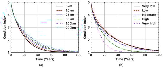 Expected condition over time: (a) Coastline distance; (b) aggressive zones.