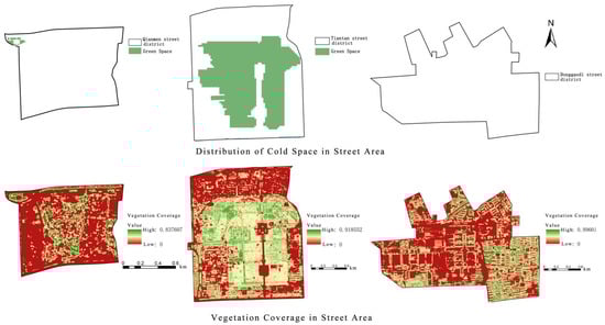 Distribution of cold space and vegetation coverage in high-risk heat exposure street districts.