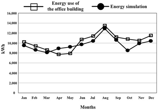 Energy consumption comparison between the reference office building and the energy simulation.