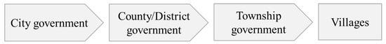 Townships in this study are the small towns that are recognized by the government through official documents such as China Statistical Yearbook. As shown in the Figure 1, in China, township government is the lowest administrative organization and has jurisdiction over several villages. Townships, consisting of villages, are the bonds linking the urban and rural areas. From this, townships play a vital role in the rural development in China. Southwest China is a typical mountainous concentration area, accounting for over 90% of the local land area. Townships in Southwest China are usually located in mountainous regions, which are abundant in natural and cultural landscape resources, and are also underdeveloped areas. All of this has led to the additional requirements for the townships’ sustainable development in Southwest China. She et al. [1] proved sustainable townships are significant for China’s sustainable development task, even for some relatively less-developed townships that are located in Southwest China.