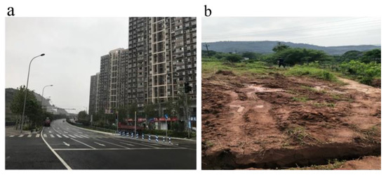 Roads in Jiansheng town. (a) The road in the town, (b) the road in the village.