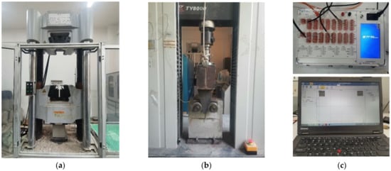 Test equipment: (a) Servo Hydraulic Universal Testing Machine; (b) computer-controlled electronic universal testing machine; (c) data acquisition system.
