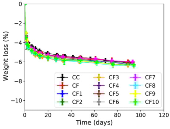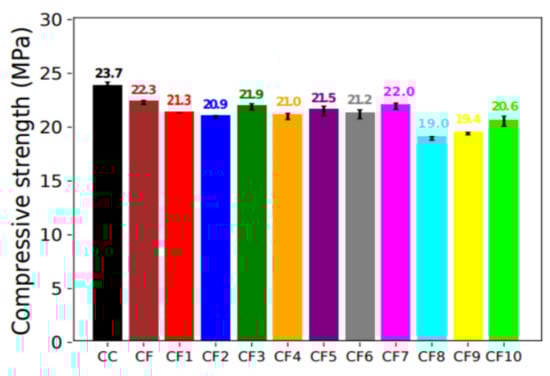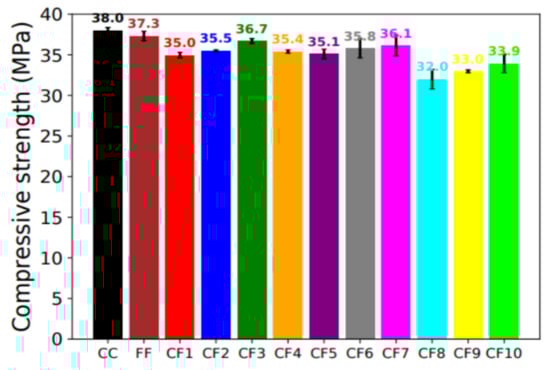 | Compressive strength (MPa) | 38 | 18 (−53%) on average | 35 (−8%) on average |
