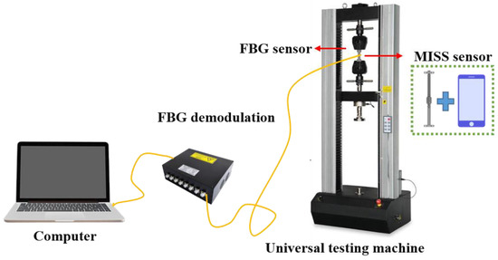 - Metal tensile tests were carried out on various materials, loading speeds, and loading methods. It was found that the material of specimen and loading speeds had little effect on the measurement results. Under the two loading methods of graded loading and continuous loading, the MISS sensor can obtain the strain value of the specimens effectively. In the metal tensile test, the mean error is 7.1 με and the correlation coefficient is as high as 0.9997 between the FBG sensor and the MISS sensor measure results.