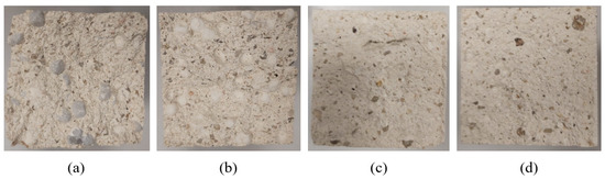 Traditionally, hydraulic lime mortars made with river sand have been used in façade rehabilitation works using continuous granulometry with aggregate fractions between 0–4 mm [20,21]. The importance of maintaining a careful granulometry and a clean aggregate becomes even greater if it is intended to produce precast lime [22], since an adequate proportion of fines provides a compact structure and better mechanical performance to the constructive element [23]. It should be noted that lime mortars fell into disuse from the 19th century with the industrial revolution and the cement boom [24], although there are certain properties such as their high plasticity and good workability that make them essential for some forms of restoration and building rehabilitation works [25,26]. Hydraulic lime mortars, in turn, have good permeability and great water retention; these properties are especially relevant when you want to avoid humidity by condensation [27]. Furthermore, as some researchers have verified, hydraulic lime mortars have higher mechanical strength at early ages and are set faster than area lime mortars [28]. From an environmental point of view, some researchers have observed how lime can absorb CO2 from the air gradually, increasing its rigidity and improving the building’s carbon footprint during its useful life [29,30].