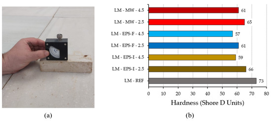 For the physical characterization of the prepared mortars, the following properties were studied: bonding strength, apparent density, Shore D surface hardness, water absorption by capillarity, and thermal conductivity.