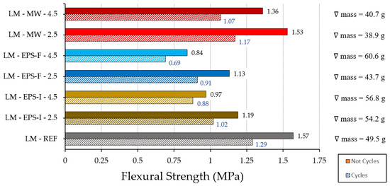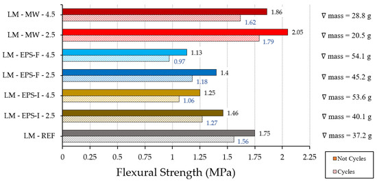 Comparison for flexural strength (MPa) between mortars with incorporation of insulating residue.