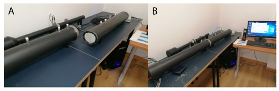 BSWA SW 422 and BSWA SW477 impedance tubes: (A) sample loading; (B) data acquisition.