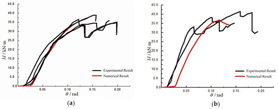 Moment–rotation curve: (a) model 1 (d = 20 mm) and (b) model 2 (d = 24 mm), (adapted from [33]).