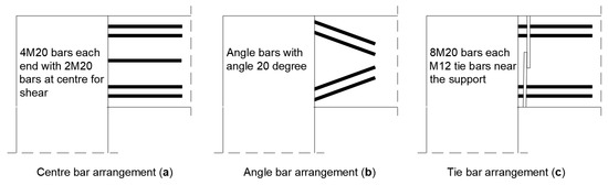 Ref. [49] investigated ductility through the yielding of steel rods within glulam. Three different arrangements of bars were considered: center bar, angle bar, and tie bar (TB) specimens.