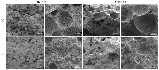 Data in Table 6 shows the differences in porosity before and after high-temperature treatment at 600 °C in both cases: