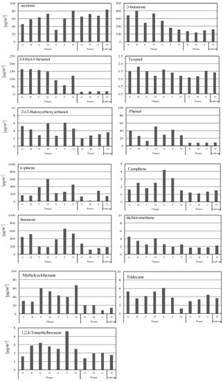 - Kim, Y.M.; Harrad, S.; Harrison, R.M. Concentration and sources of VOCs in urban domestic and public microenvironments. Environ. Sci. Technol. 2001, 35, 997–1004. [Google Scholar] [CrossRef]