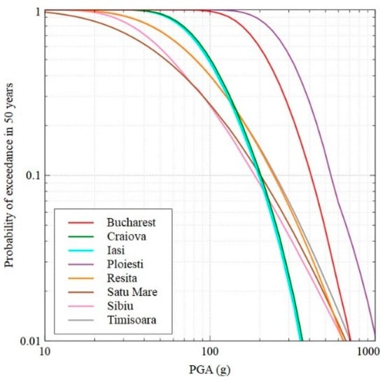 - Arion, C.; Pavel, F.; Vacareanu, R.; Neagu, C.; Iancovici, M.; Popa, V.; Damian, I. Seismic risk assessment of Romania. In Seismic Hazard and Risk Assessment Updated Overview with Emphasis on Romania; Springer: Berlin/Heidelberg, Germany, 2018; pp. 251–265. ISBN 978-3-319-74723-1. [Google Scholar]